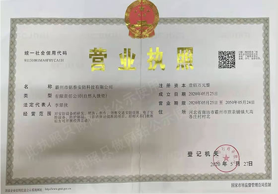 您好,歡迎來到霸州市銘泰安防科技有限公司!